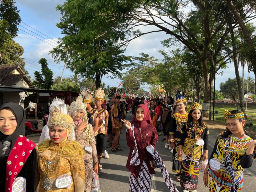 Barisan berlanjut dengan peragaan adat dan keragaman agama. Para siswa mengenakan busana tradisional dari berbagai daerah serta simbol identitas beragama. Pesan yang ingin disampaikan adalah pentingnya persatuan di tengah perbedaan.